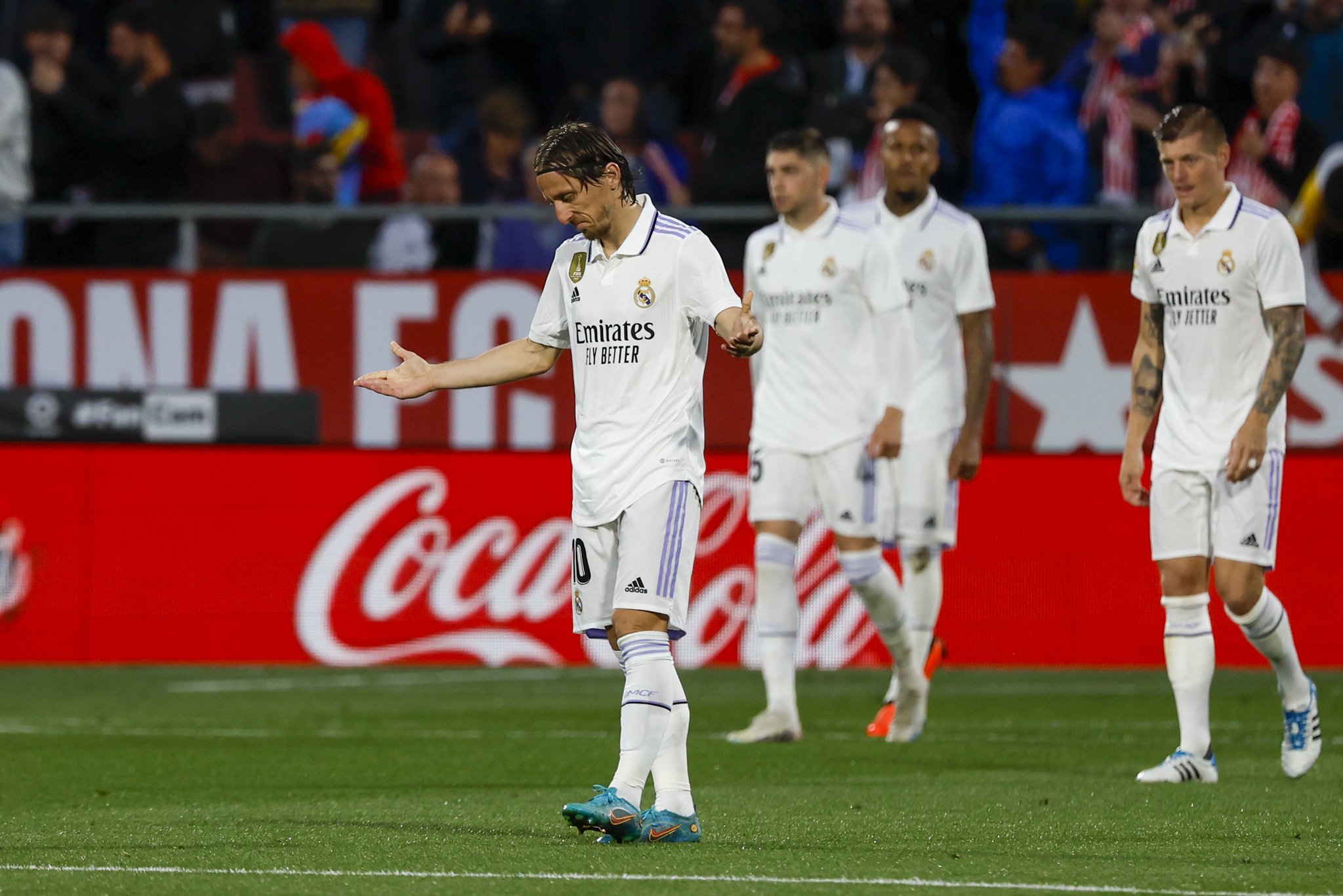 وتلقى فريق ريال مدريد خسارة قاسية على يد مضيفة جيرونا، بأربعة أهداف مقابل هدفين، في المبارة التي جمعت بين الفريقين اليوم، على ملعب مونتليفي في مدينة كتالونيا.