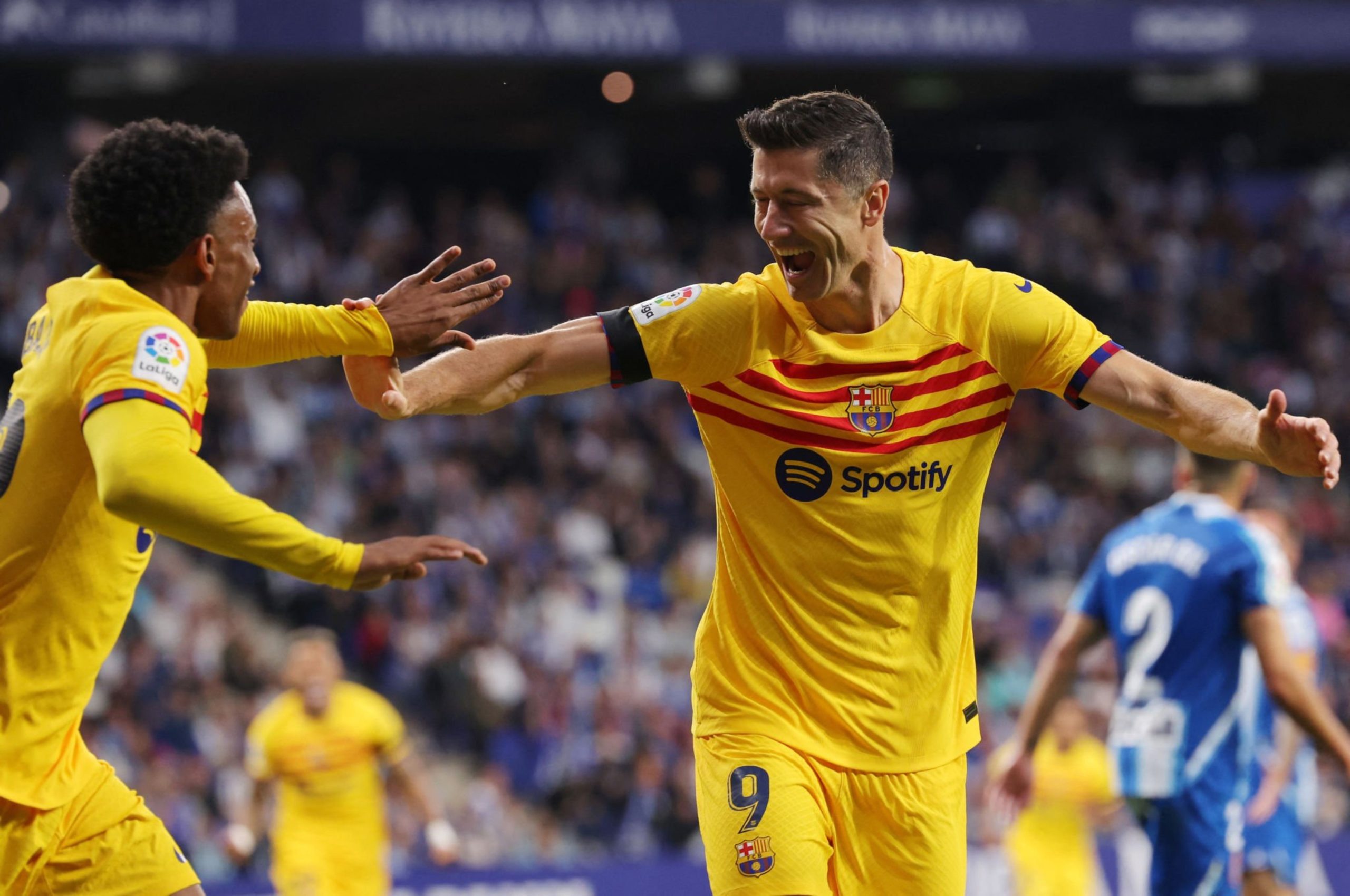 وقاد ليفاندوفيسكي فريق برشلونة للتتويج بلقب الدوري الإسباني لموسم 2022-2023، للمرة السابعة والعشرين في تاريخه، بعدما سجل هدفين في شباك إسبانيول.