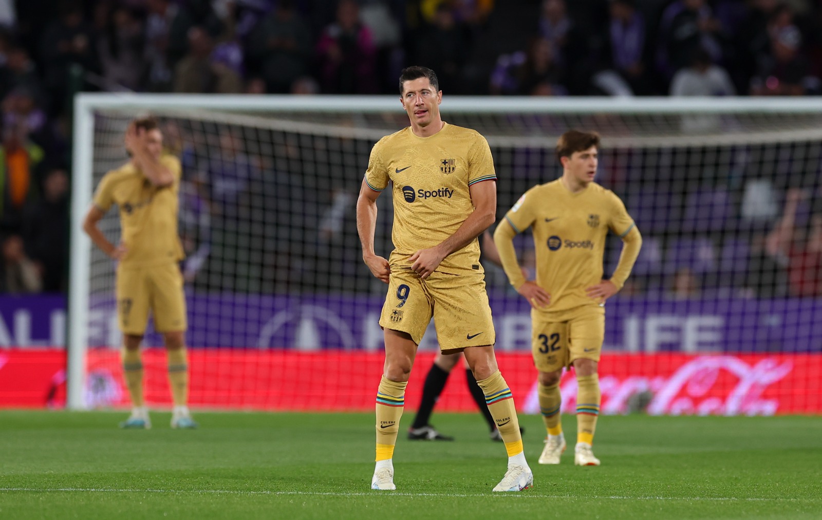 حسرة لاعبي برشلونة بعد تلقي الهدف الثاني أمام ريال بلد الوليد - الدوري الإسباني