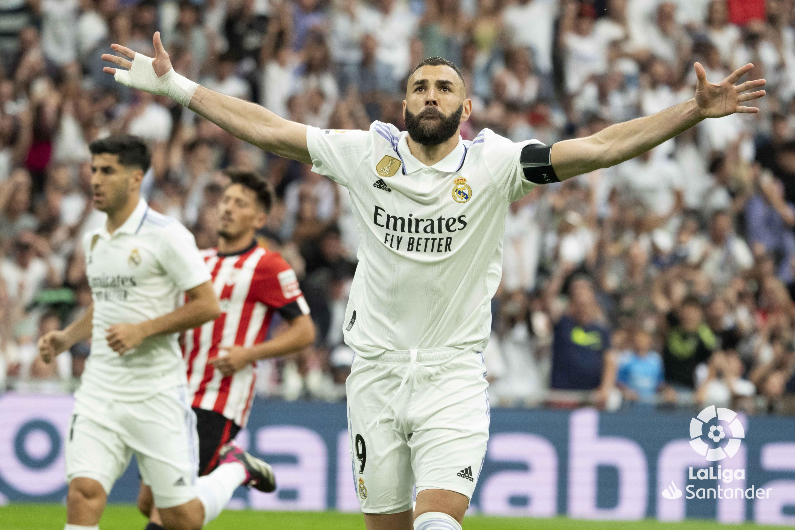احتفال كريم بنزيما بعد تسجيل هدف ريال مدريد أمام أتلتيك بلباو - الدوري الإسباني