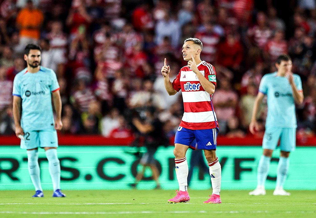 ويواجه برشلونة، غرناطة، في مباراة جارية على ملعب الآخير “لوس كارمينيس”، لحساب الجولة التاسعة من الدوري الإسباني.