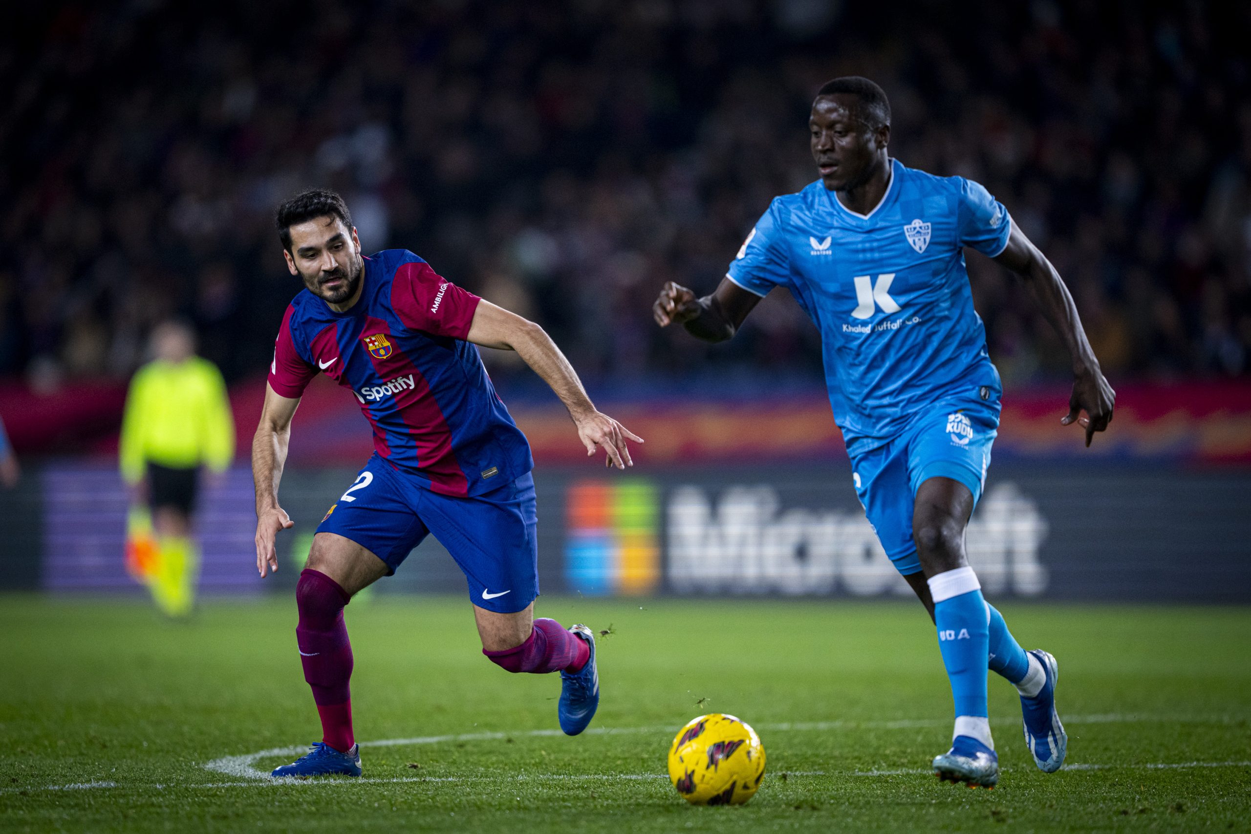 أفتتح رافينها التسجيل في اللقاء لصالح برشلونة في الدقيقة 33 من عمر المباراة، واستطاع ألميريا ادراك التعادل سريعاً بهدف في الدقيقة 41، لينتهي الشوط الأول بالتعادل الإيجابي بهدف لكل منهما.