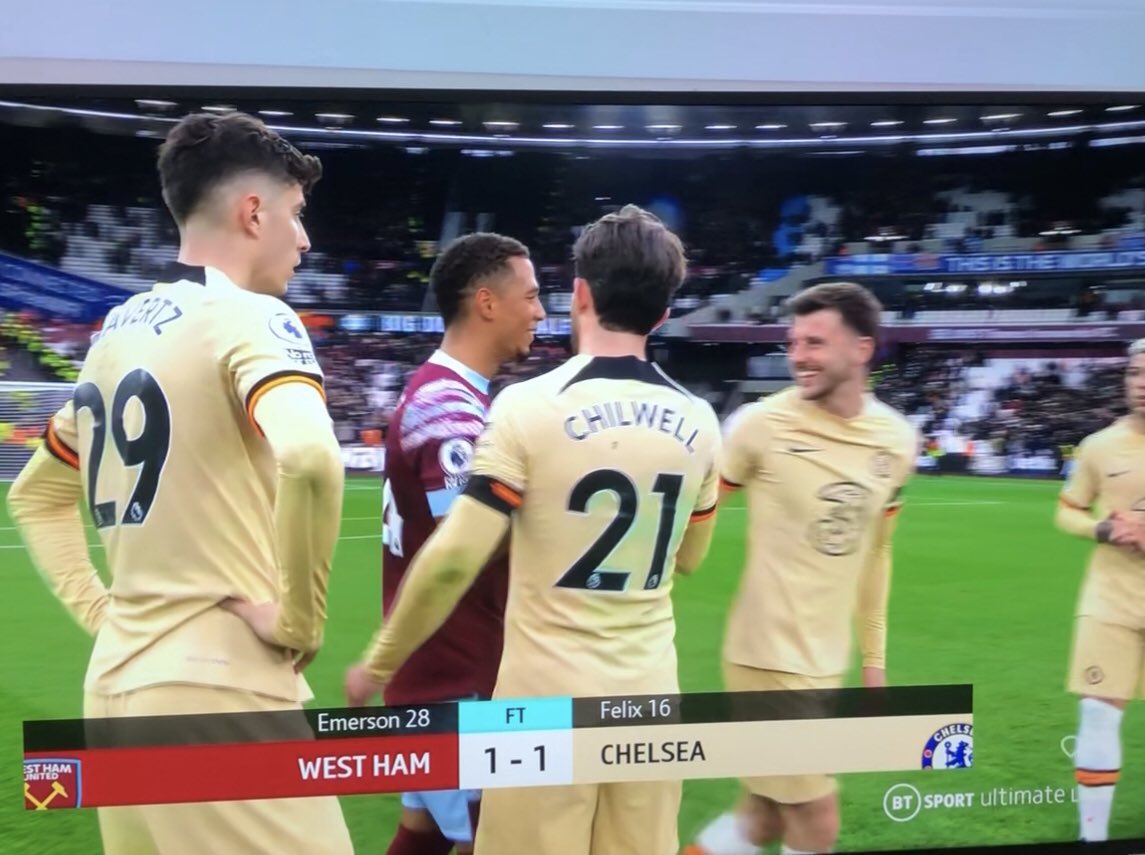 وكان فريق تشيلسي قد وقع في فخ التعادل الإيجابي بهدف مع نظيره ويستهام، في إطار منافسات الجولة الثالثة والعشرين من بطولة الدوري الإنجليزي الممتاز، اليوم السبت.