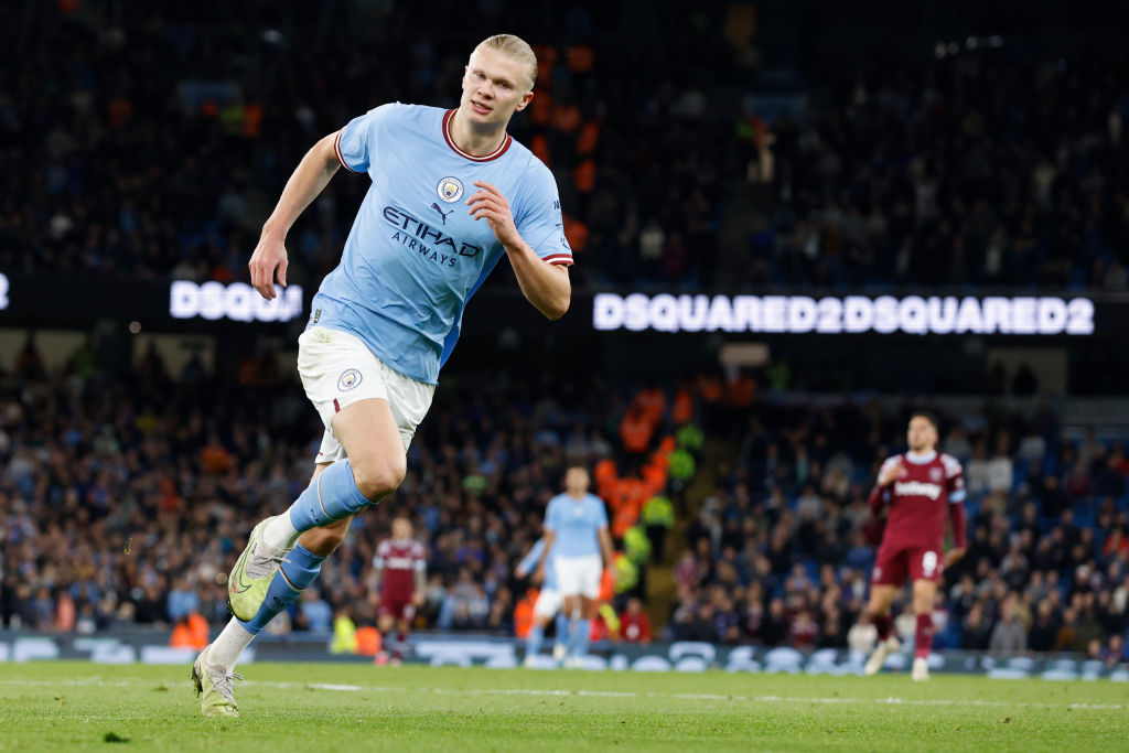 إيرلينج هالاند بعد تسجيل هدف مانشستر سيتي الثاني أمام وست هام يونايتد