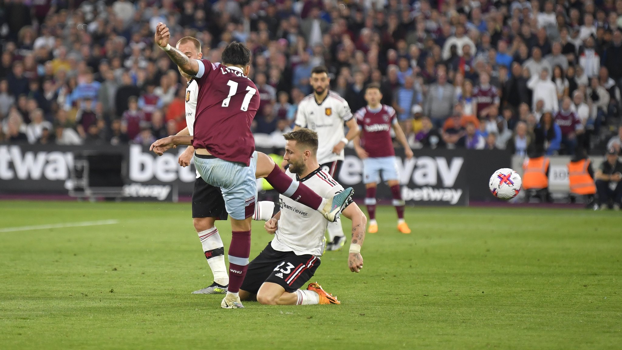 سجل الجزائري الدولي سعيد بن رحمة هدف وست هام في مرمى مانشستر يونايتد في الدقيقة 27.