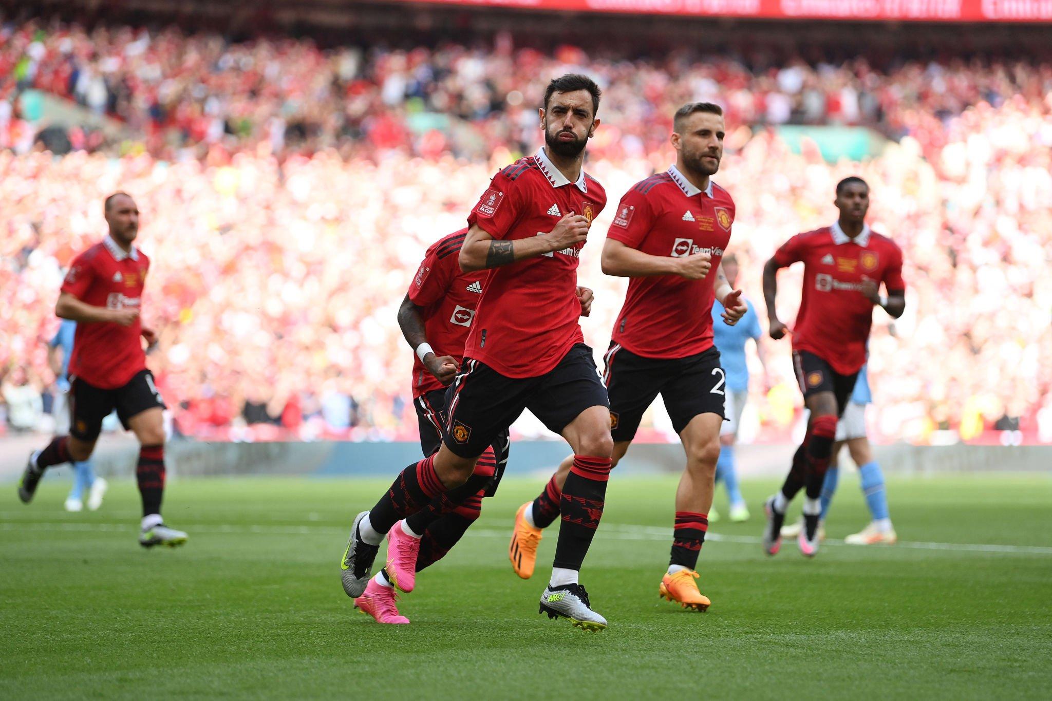 لاعبو مانشستر يونايتد بعد تسجيل هدف التعادل أمام مانشستر سيتي