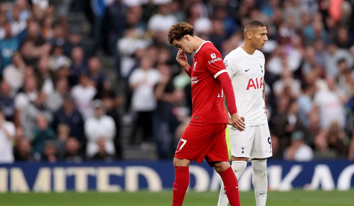 وسجل سون هيونج مين هدف توتنهام أمام ليفربول، مفتتحًا النتيجة، وتعادل كودي جاكبو للريدز قبل نهاية الشوط الأول.
