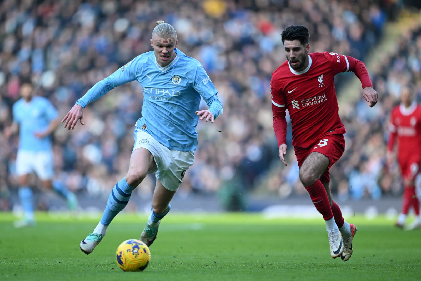 وبدأ يوم السبت الكروي، بمواجهة من العيار الثقيل بين مانشستر سيتي وليفربول، على ملعب الاتحاد، وانتهت بالتعادل الإيجابي بهدف لمثله.