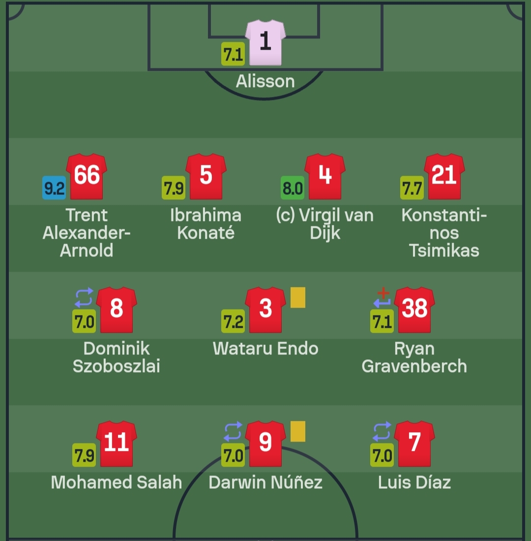 وبحسب شبكة “سوفا سكور”، فإن محمد صلاح حصل على تقييم 7.9، ثالث أفضل لاعب في ليفربول خلال المباراة.