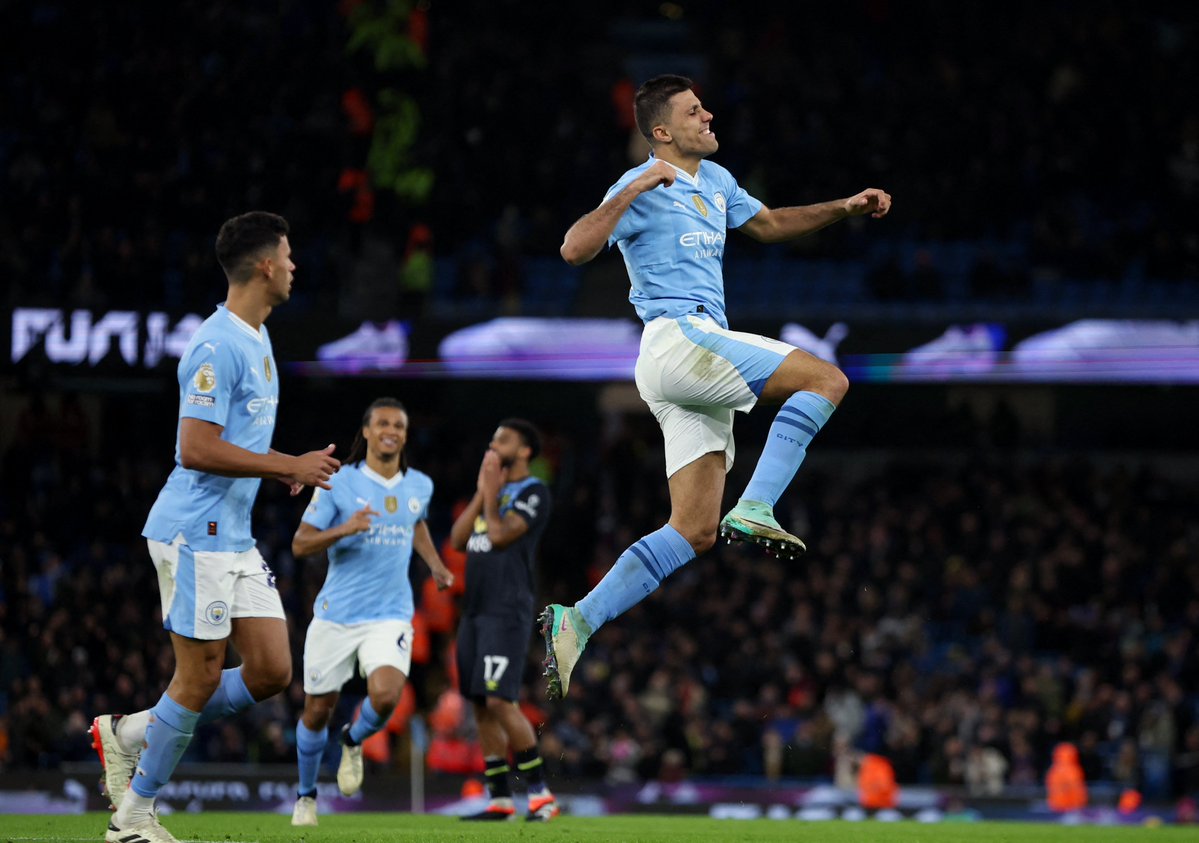 وفي الشوط الثاني، خلال الدقيقة 46، أحرز رودريجو هيرنانديز كاسكانتي، الهدف الثالث لفريق مانشستر سيتي، بصناعة فيل فودين.