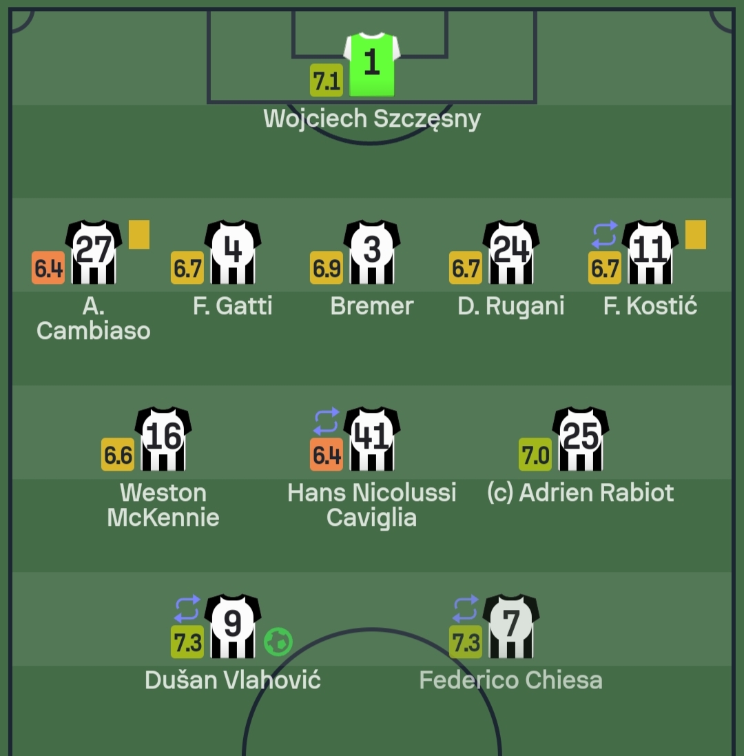 بينما كان الثنائي، فلاهوفيتش، وكييزا، أفضل لاعبي يوفنتوس في مباراة الفريق ضد الإنتر، بتقييم 7.3، بينما كان  كامبياسو و نيكولوسي كافيليا، أسوأ ثنائي بـ6.4.