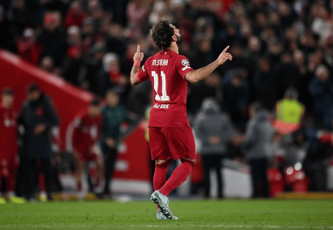 وأصبح محمد صلاح، أكثر لاعب سجل أهداف لليفربول في البطولات الأوروبية برصيد 41 هدفًا، معادلًا  رقم ستيفين جيرارد.