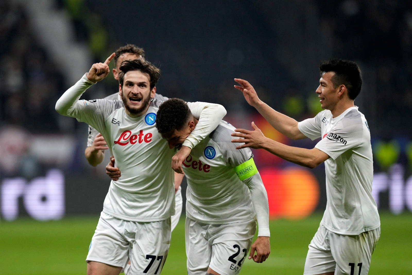 ووضع فريق نابولي الإيطالي قدمًا في ربع نهائي دوري أبطال أوروبا، بعد الفوز على آينتراخت فرانكفورت بهدفين دون رد.
