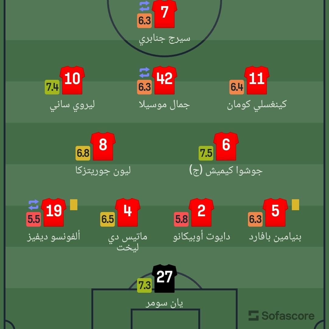 ودخل ساديو ماني، بديلًا وحصل على تقييم 6.5، بالإضافة إلى توماس مولر، الذي حصل على تقييم 6.6.