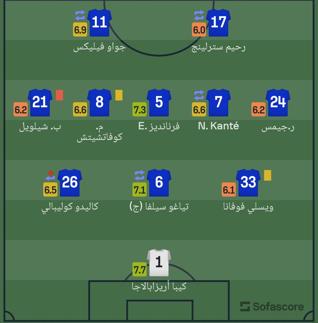 وعلى الجانب الآخر، كان كيبا حارس مرمى تشيلسي أفضل لاعب في الفريق بتقييم 7.7، يليه فرنانديز بـ 7.3.