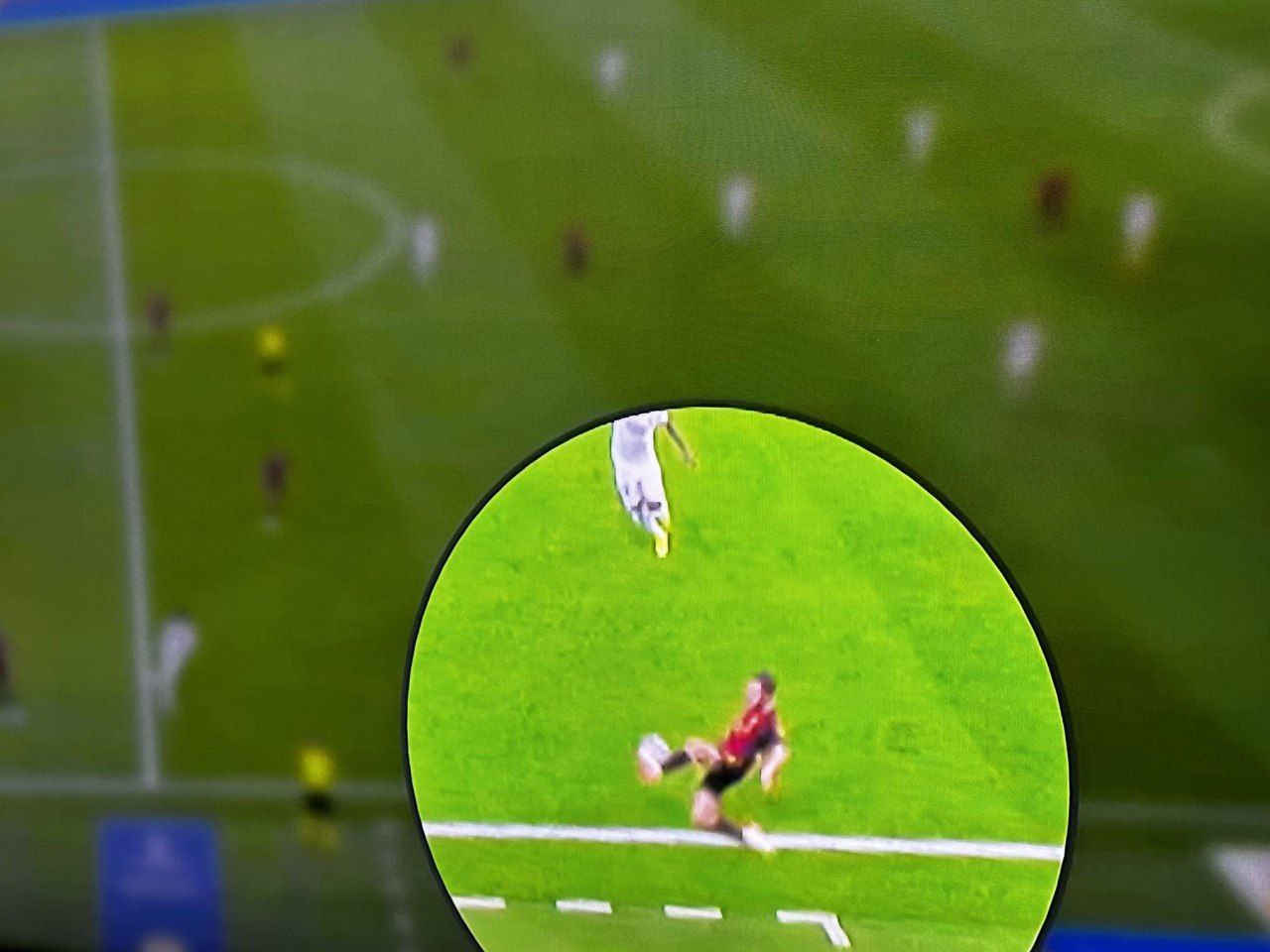 ومن المرجح أن تكون الكرة لم تخرج بكامل محيطها أو ظل الكرة منعكس على خط المرمى وبالتالي قد يكون الهدف صحيحًا.