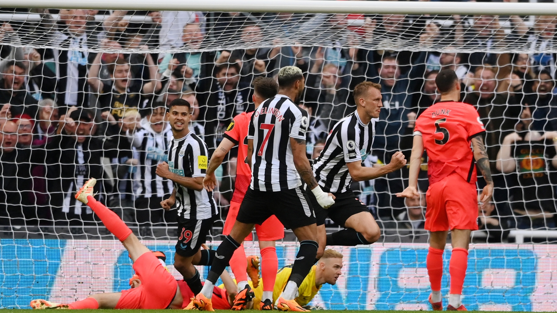 لاعبو نيوكاسل بعد الهدف الثاني أمام برايتون أند هوف ألبيون - الدوري الإنجليزي