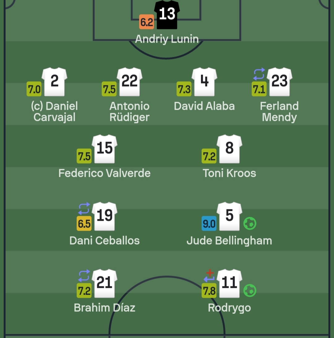 وأرسل بيلينجهام، 5 كرات طولية صحيحة من أصل 5، وخلق فرصة كبيرة للتهديف، وسدد تسديدتين على المرمى، وفاز في 3 محاولات مراوغة من خمس محاولات.