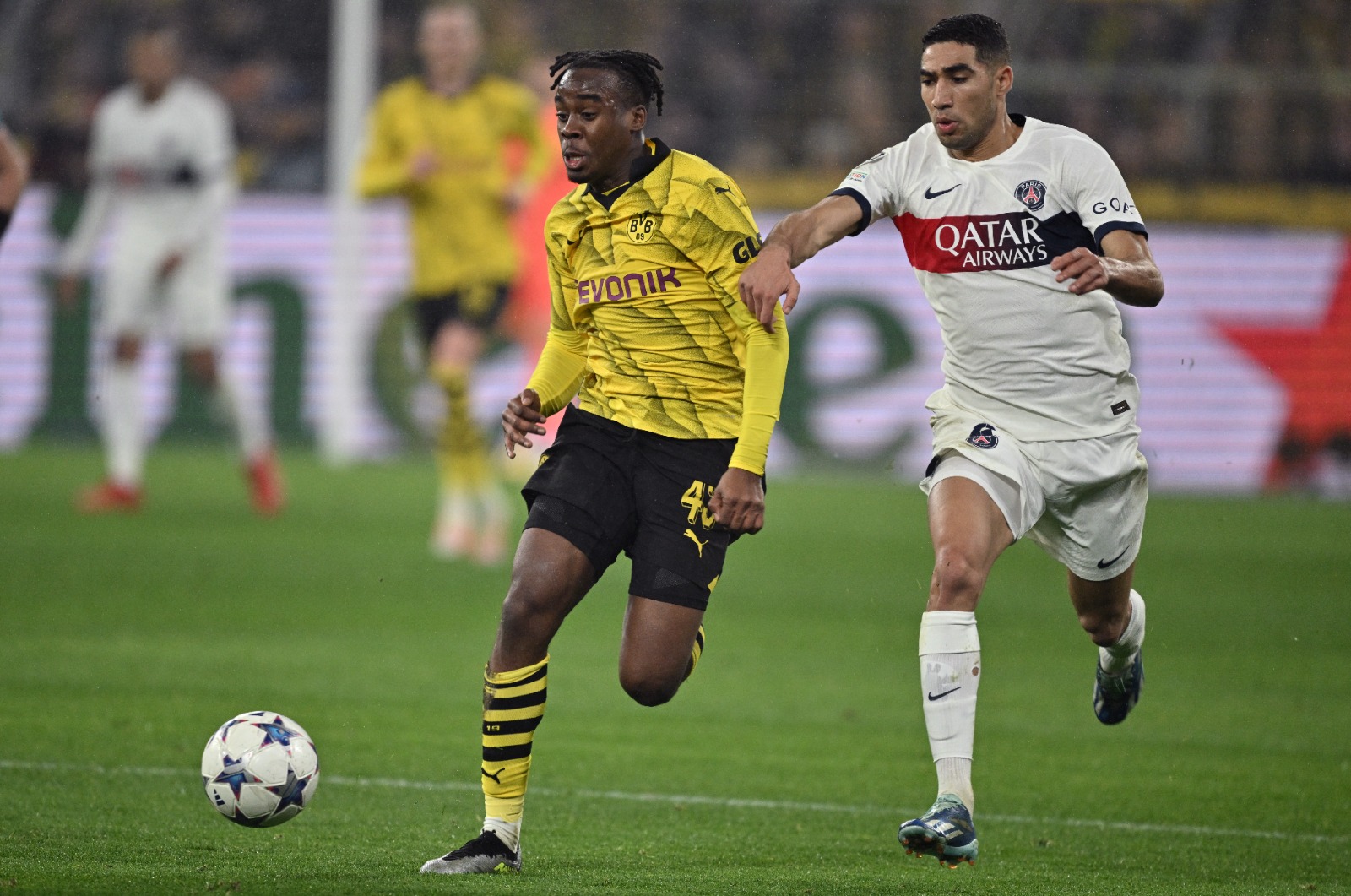 لكن فرحة دورتموند لم تستمر طويلًا، ليدرك باريس سان جيرمان التعادل عن طريق وارن زائير إيمري في الدقيقة 56، بعد مجهود رائع من كليان مبابي.