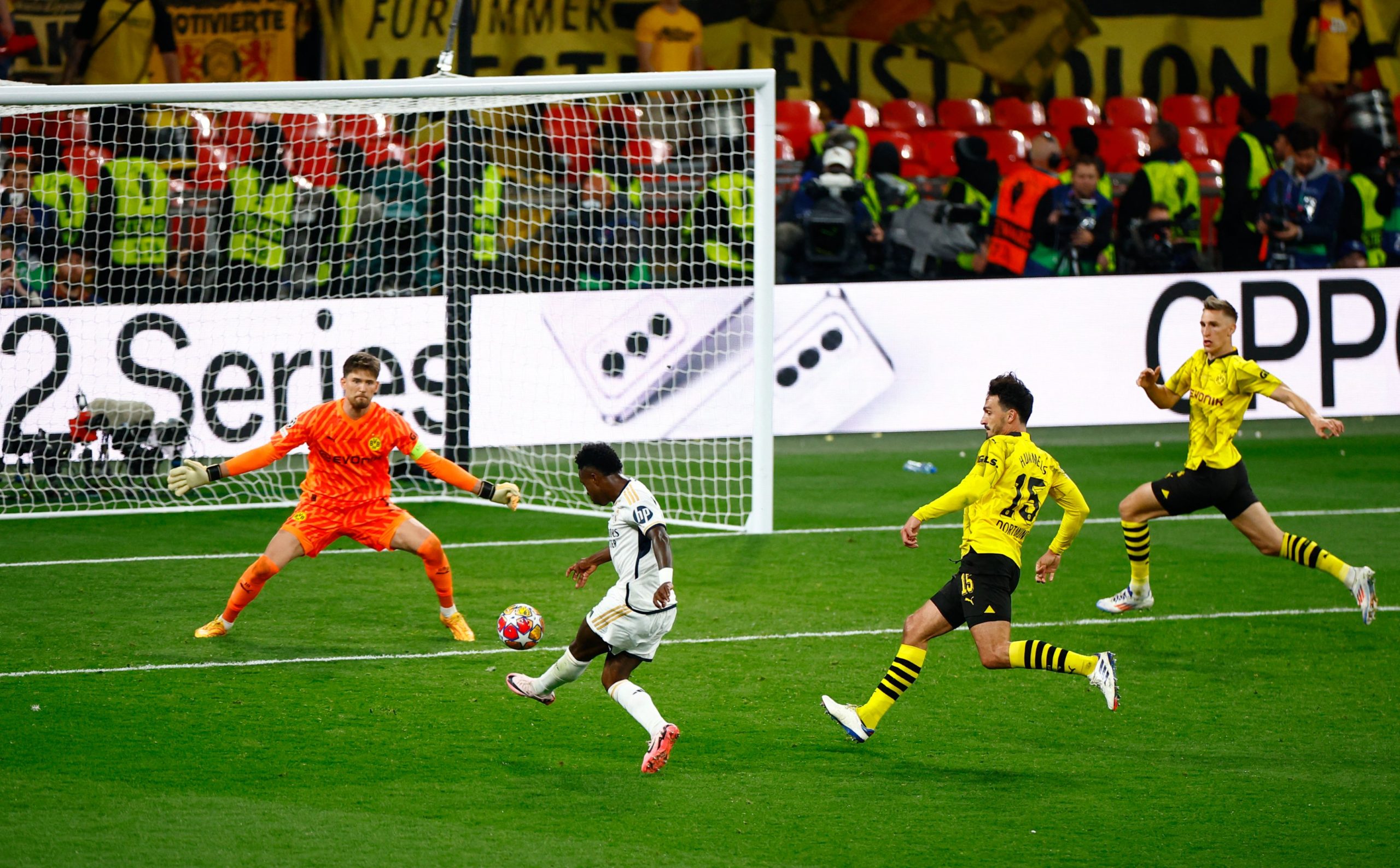 أكمل فينيسيوس جونيور ثماني مراوغات ضد بوروسيا دورتموند، وهو نفس عدد اللاعبين الآخرين في المباراة مجتمعين (8).. كان هذا هو أكبر عدد من قبل لاعب في نهائي دوري أبطال أوروبا منذ ليونيل ميسي في عام 2015 (10 ضد يوفنتوس).