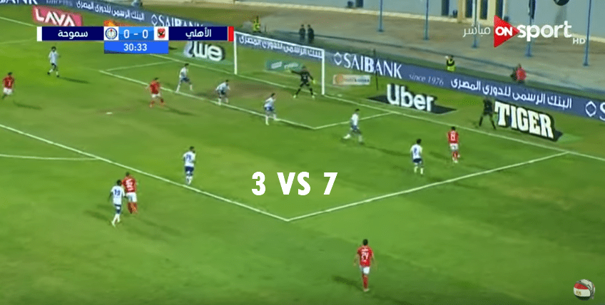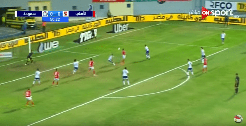 الأهلي خلال الـ35 دقيقة الأولى كانت جميع محاولاته للاختراق من العمق فقط دون أي استغلال للجبهتين، مما سهل مهمة سموحة.
