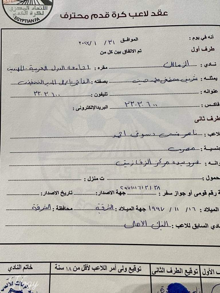 استمر مسلسل تسريب عقود لاعبي الزمالك، وآخر ضحايا التسريب هو ناصر منسي.