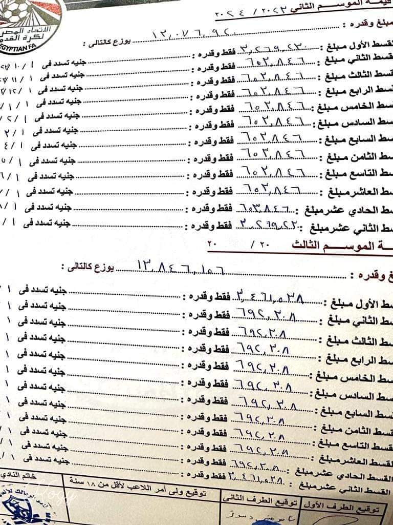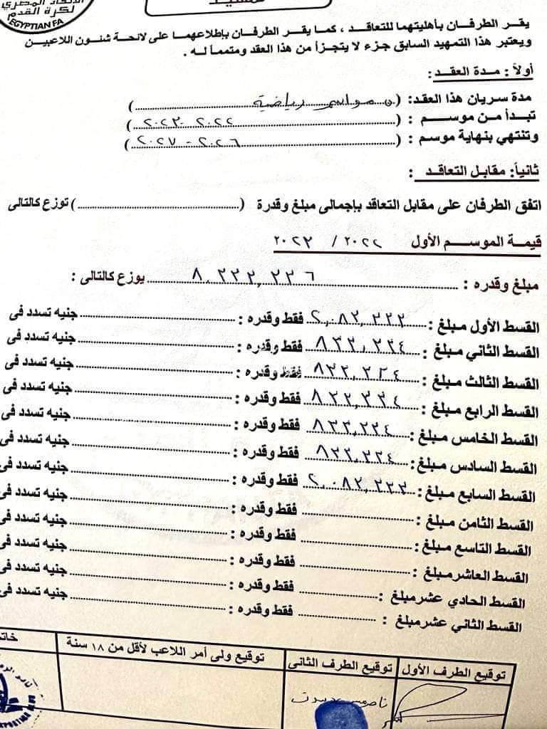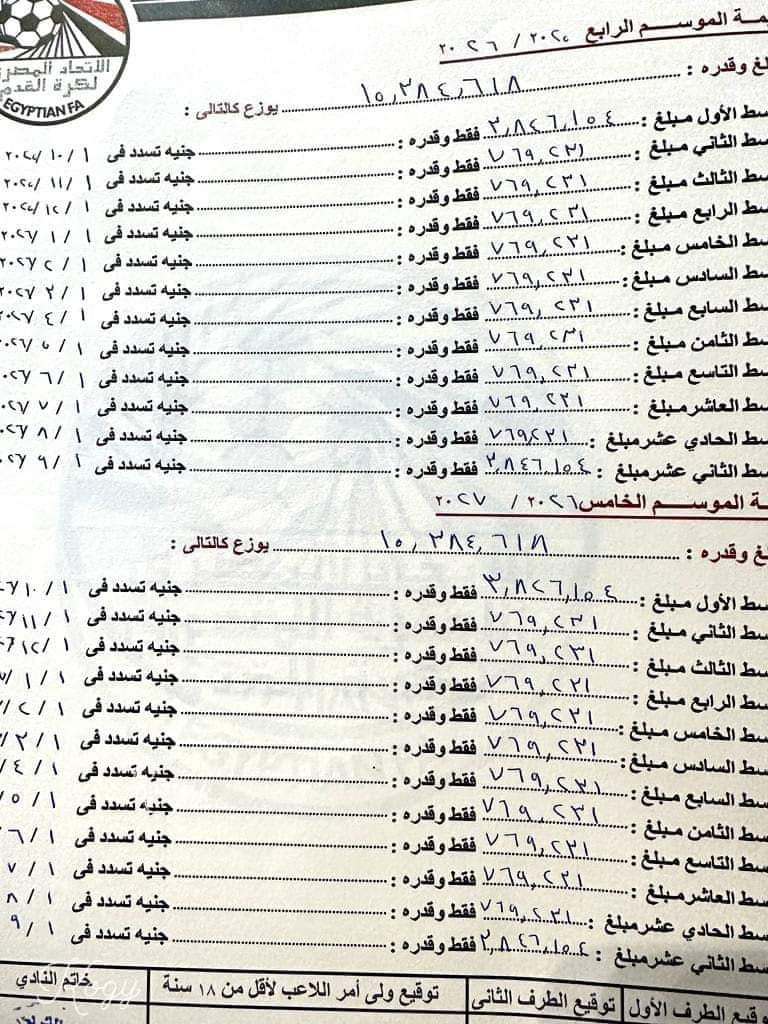 وكشفت العقود المسربة حصول ناصر منسي على 64 مليون جنيه من الزمالك خلال 5 مواسم ونصف، بواقع 8 مليون في الموسم الأول، و13 مليون في الموسم الثاني، ومثلها في الموسم الثالث، و15 مليون في الموسم الرابع، والخامس.