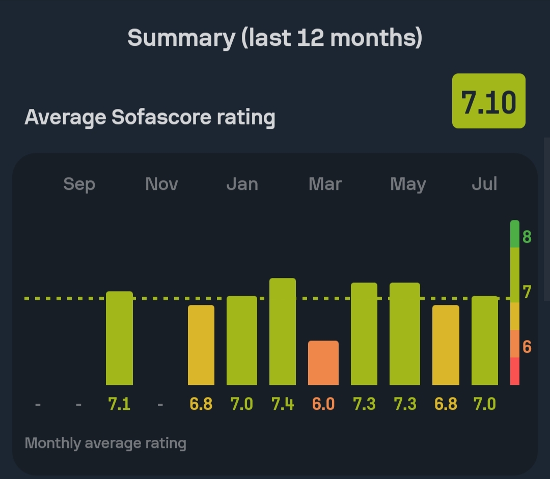 وبحسب موقع “سوفا سكور” للأرقام والإحصائيات، فإن متوسط تقييم حسين الشحات خلال آخر 12 شهر بلغت 7.10 درجة.