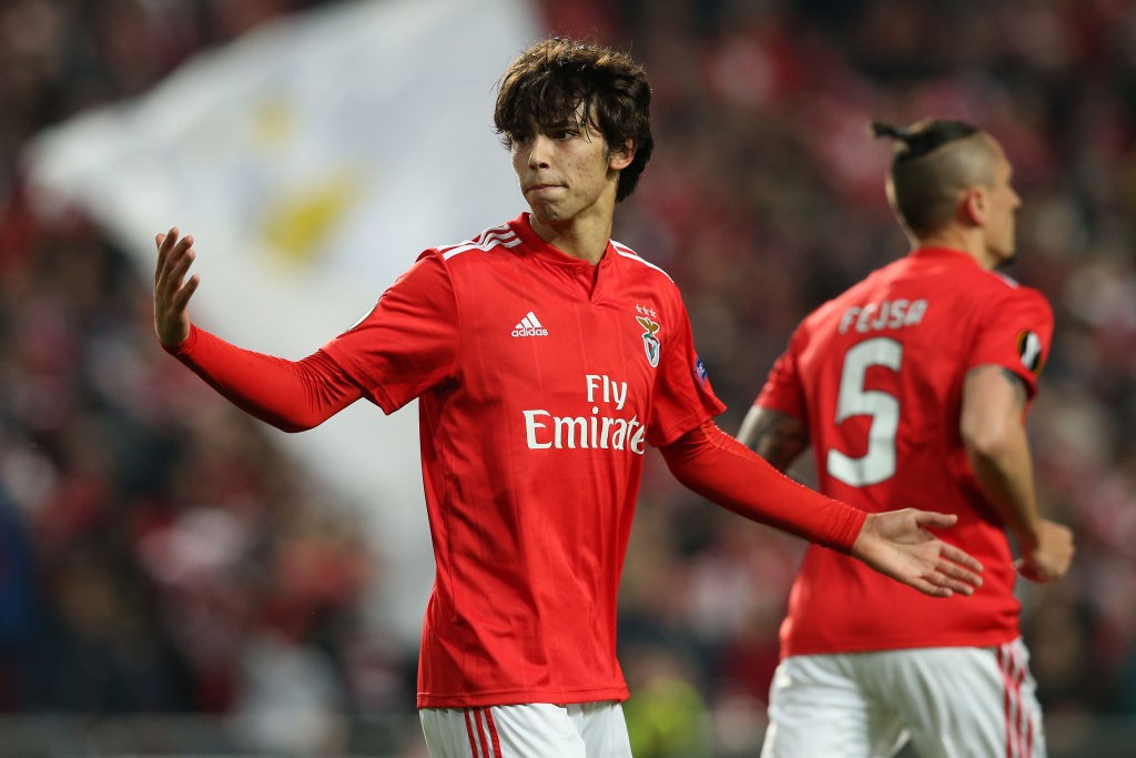 LISBON, PORTUGAL - APRIL 11: Joao Felix of SL Benfica celebrates after scoring a goal during the UEFA Europa League Quarter Final - First Leg match between SL Benfica and Eintracht Frankfurt at Estadio da Luz on April 11, 2019 in Lisbon, Portugal. (Photo by Gualter Fatia/Getty Images)