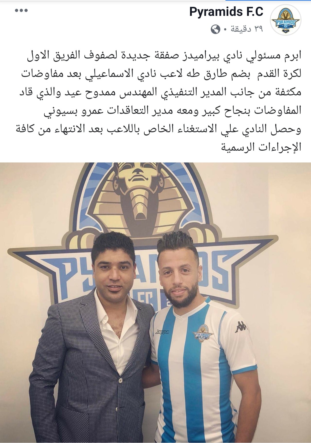 وكتب النادي منذ قليل عبر حسابه الرسمي على موقع التواصل “فيس بوك”: “أبرم مسئولي نادي بيراميدز صفقة جديدة لصفوف الفريق الاول لكرة القدم بضم طارق طه لاعب نادي الاسماعيلي”.
