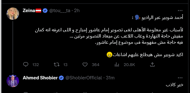 وروج البعض لتصريح على لسان شوبير، بأن جلسة تصوير صفقة إمام عاشور للنادي الاهلي تم إلغاءها، بالإضافة لتخلفه عن جلستين حتى الآن.