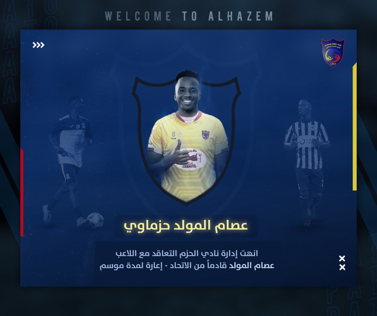 ونشر الحساب الرسمي لنادي الحزم عبر موقع التواصل الإجتماعي “تويتر” صورة للاعب الاتحاد وعلق عليها: “لاعب الوسط عصام المولد يمثل الفريق الكروي الأول قادماً من نادي الاتحاد لمدة موسم رياضي واحد بنظام الاعارة”.