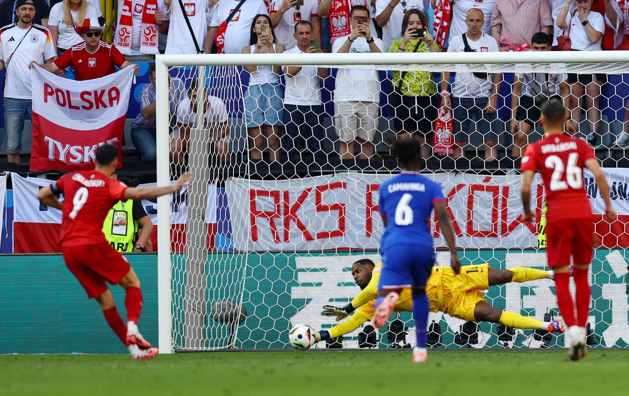 سجل مبابي أول أهدافه في بطولة كأس أمم أوروبا عند الدقيقة (56) بتسجيله هدف منتخب فرنسا الأول عبر ركلة جزاء، وتعادل روبرت ليفاندوفسكي، في الدقيقة (79) عبر ركلة جزاء تسبب فيها دايو أوباميكانو.