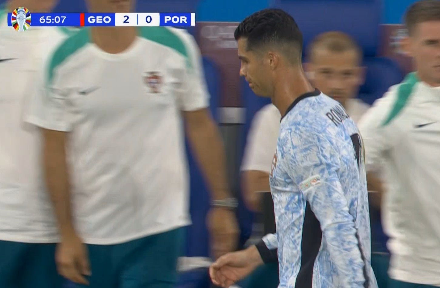 وظهر رونالدو في مشهد غاضب بعد أن تم استبداله في مباراة منتخب البرتغال أمام نظيره جورجيا المقامة حاليًا ضمن منافسات الجولة الثالثة والأخيرة من دور المجموعات في كأس أمم أوروبا.