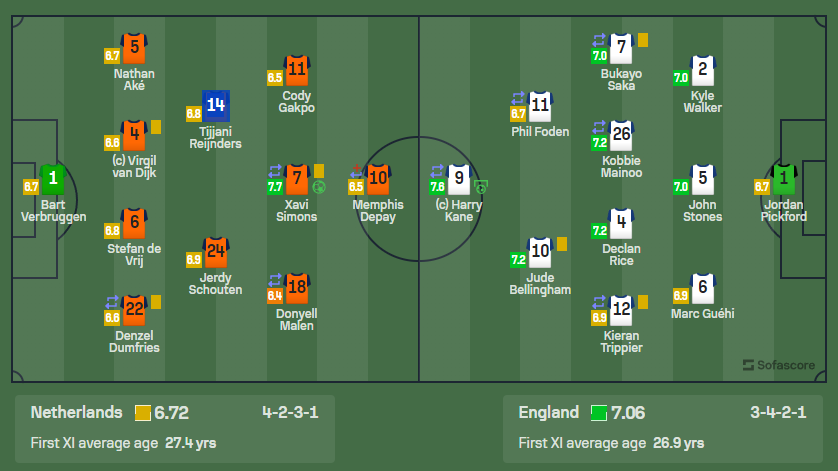بيلينجهام يتفوق على فان دايك.. تقييم لاعبي هولندا وإنجلترا في نصف نهائي يورو 2024