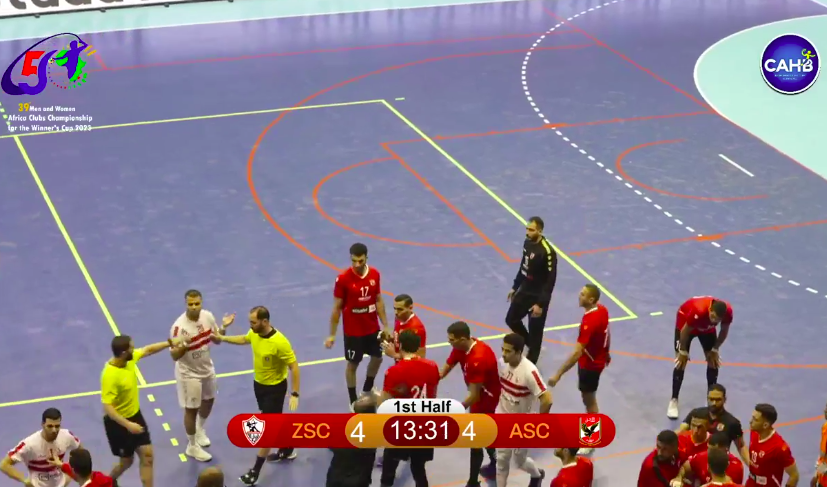شهدت الدقائق الأولى من مباراة الأهلي وغريمه التقليدي الزمالك، والتي تجمعهما حاليًا في نهائي كأس الكؤوس الإفريقية لكرة اليد رجال، مشاجرة بين لاعبي الفريقين.