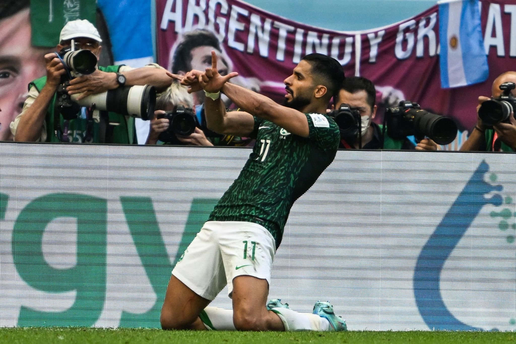 ودشن الأخضر السعودي مشاركته في كأس العالم بانتصار ملحمي على منتخب الألبيسيليتي (2-1)، بعدما كان متأخرًا بهدف لـ ليونيل ميسي من ركلة جزاء.