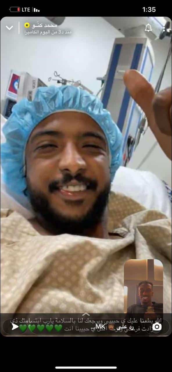 وطمئن محمد كنو؛ لاعب وسط المنتخب السعودي، الجماهير على زميله ياسر الشهراني، حيث نشر صورة لمكالمة فيديو بينه وبين الشهراني على تطبيق سناب شات.