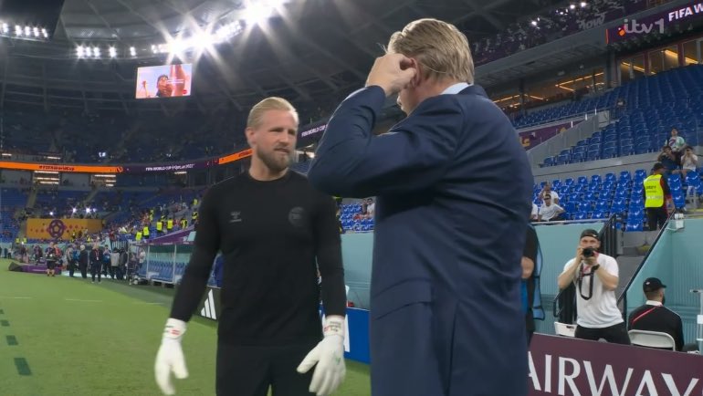 وحرص بيتر شمايكل، على دعم نجله قبل انطلاق المباراة المثيرة بين فرنسا والدنمارك، حيث تواجد على أرض الملعب، وجمعه حديث بـ كاسبر.