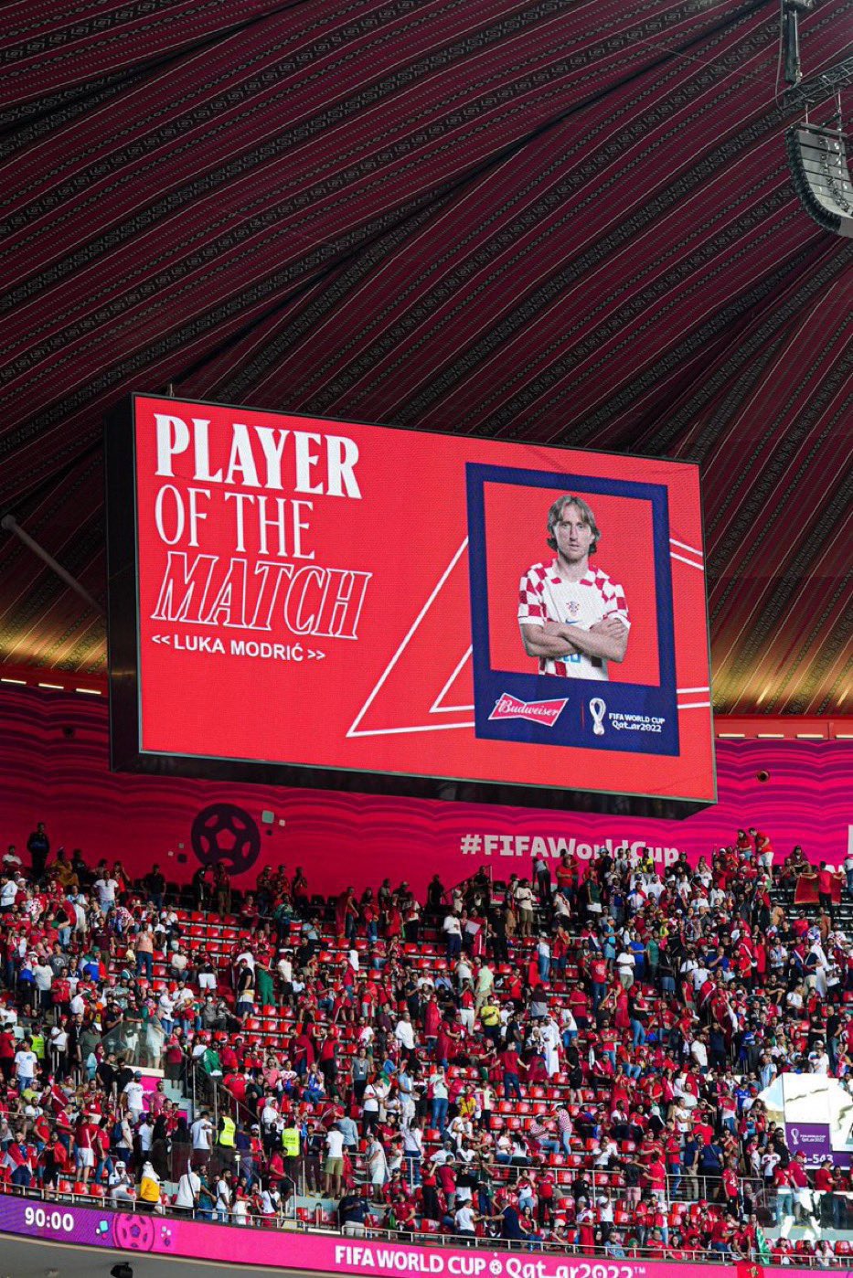 فاز نجم نادي ريال مدريد و قائد المنتخب الكرواتي لوكا مودريتش بجائزة رجل مباراة فريقه أمام المنتخب البلجيكي في كأس العالم 2022