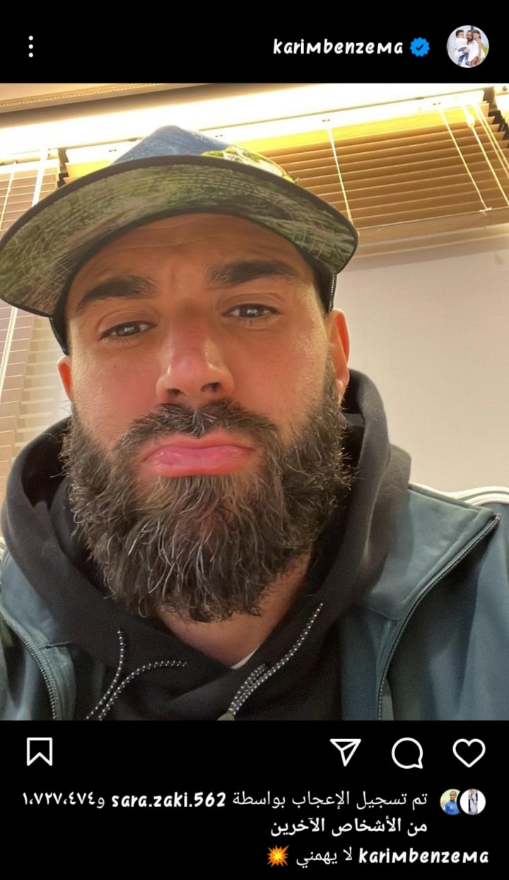 ونشر بنزيما صورة له عبر حسابه الرسمي على موقع التواصل الاجتماعي انستجرام، وعلق عليها: “لست مهتمًا”.