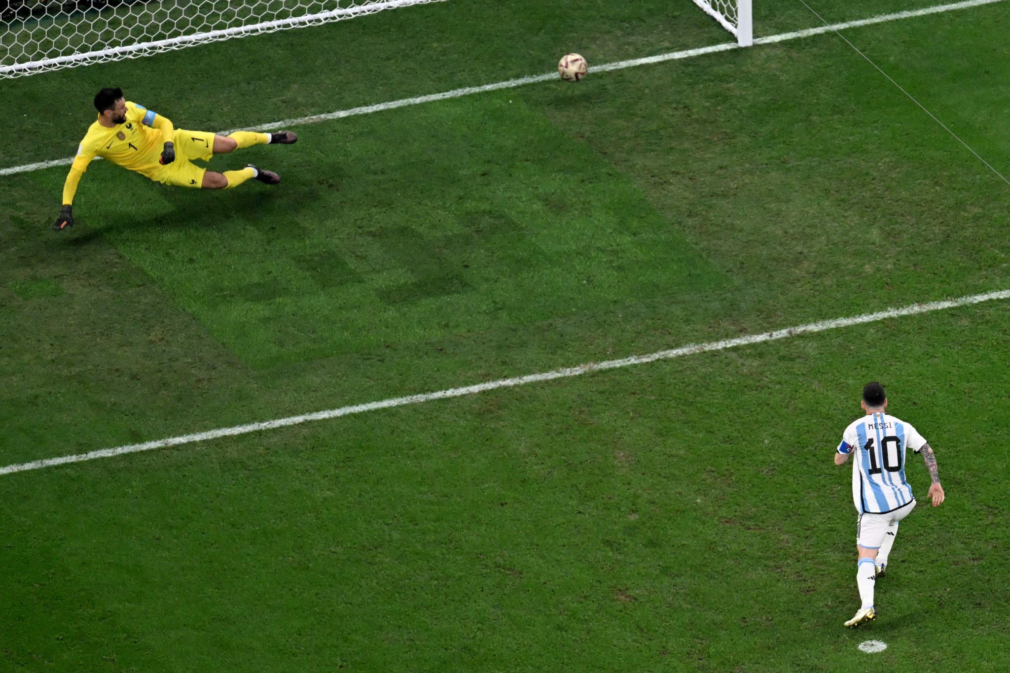 وحصل منتخب الأرجنتين الأول لكرة القدم، على ركلة جزاء أمام فرنسا، بعد خطأ ضد دي ماريا، والتي سجلها ليونيل ميسي في الدقيقة 23 في شباك الديوك.