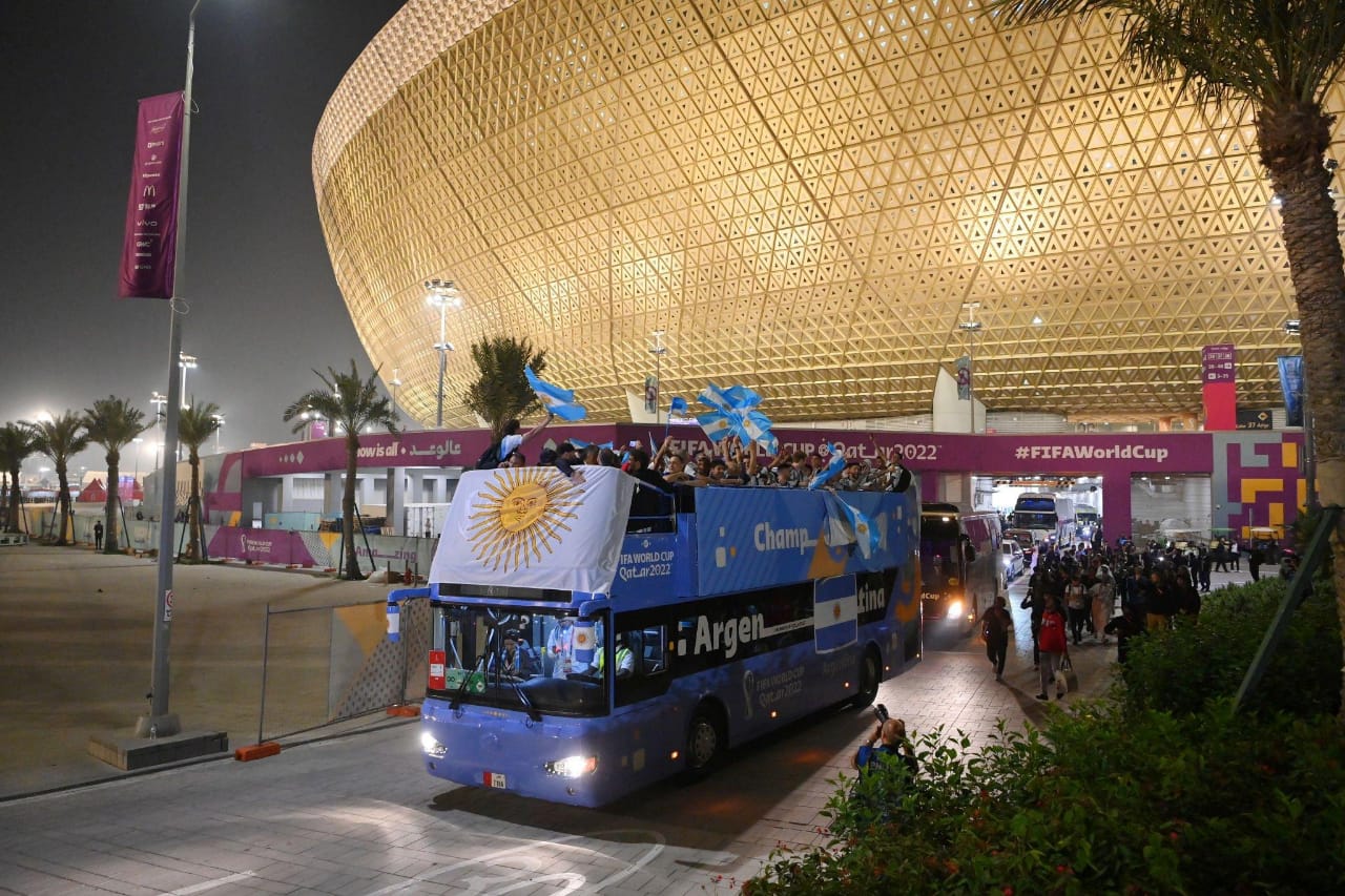 وقام الأتوبيس الخاص باحتفالات المنتخب الأرجنتيني بالتجول في درب لوسيل، وسط احتفالات الجماهير المتواجدة في قطر.