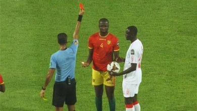 شاهد .. لاعب غينيا للحكم أمين عمر : انت مجنون