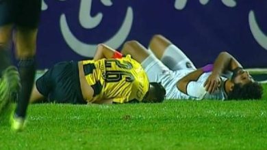 سقوط مرعب للاعب الاتصالات في مباراة المقاولون “ابتلع لسانه”
