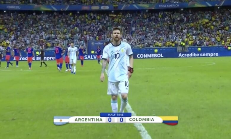 انتهى الشوط الأول من مباراة الأرجنتين وكولومبيا في افتتاح مباريات المجموعة الثانية من كوبا أمريكا بالتعادل دون أهداف.